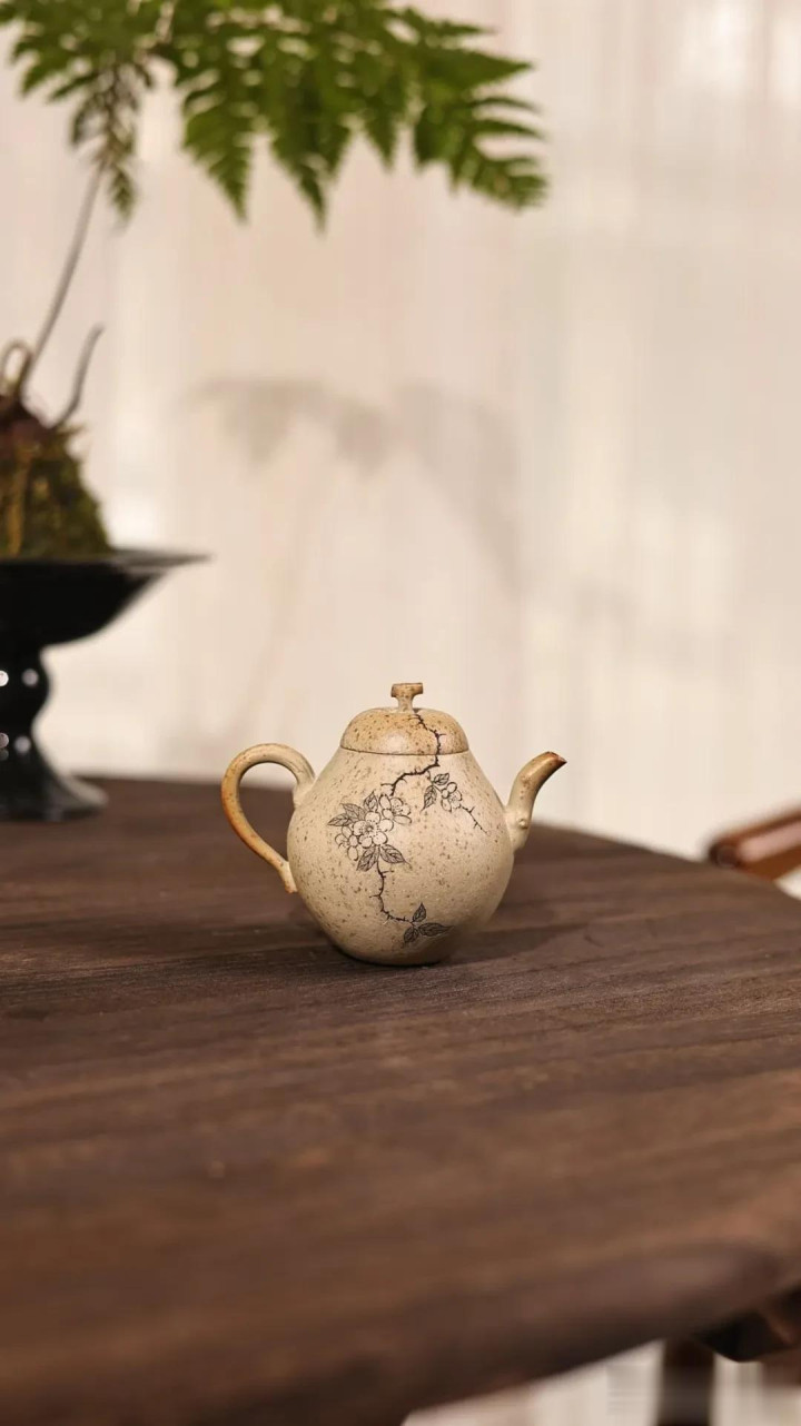 取香梨当然之形,壶身梨花点点,似春雪落枝端,爱惜大雅,禅茶一味