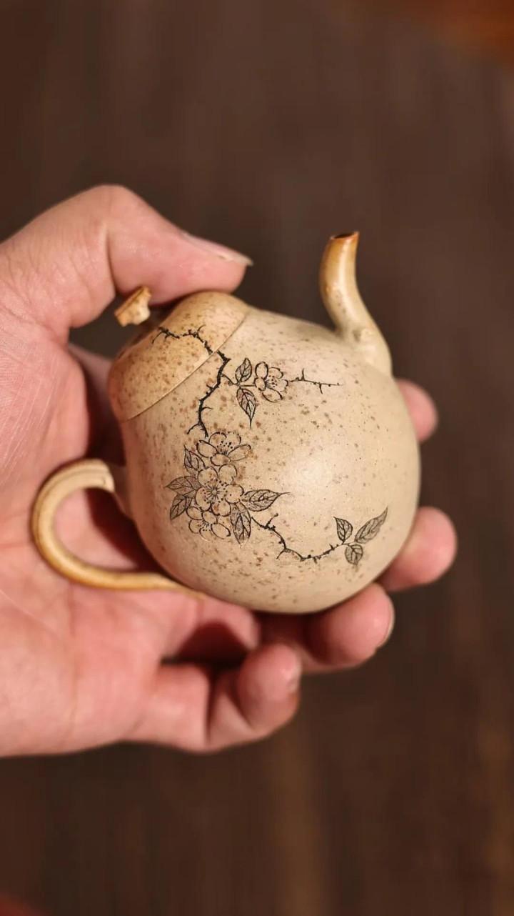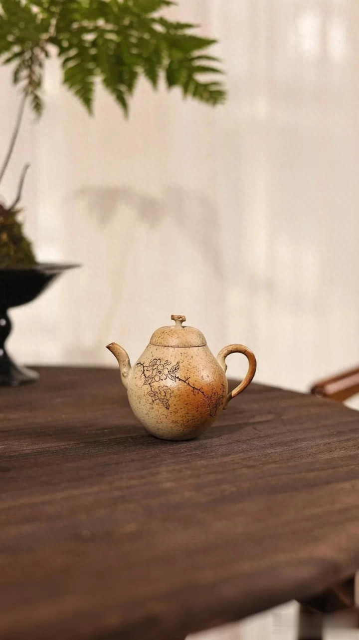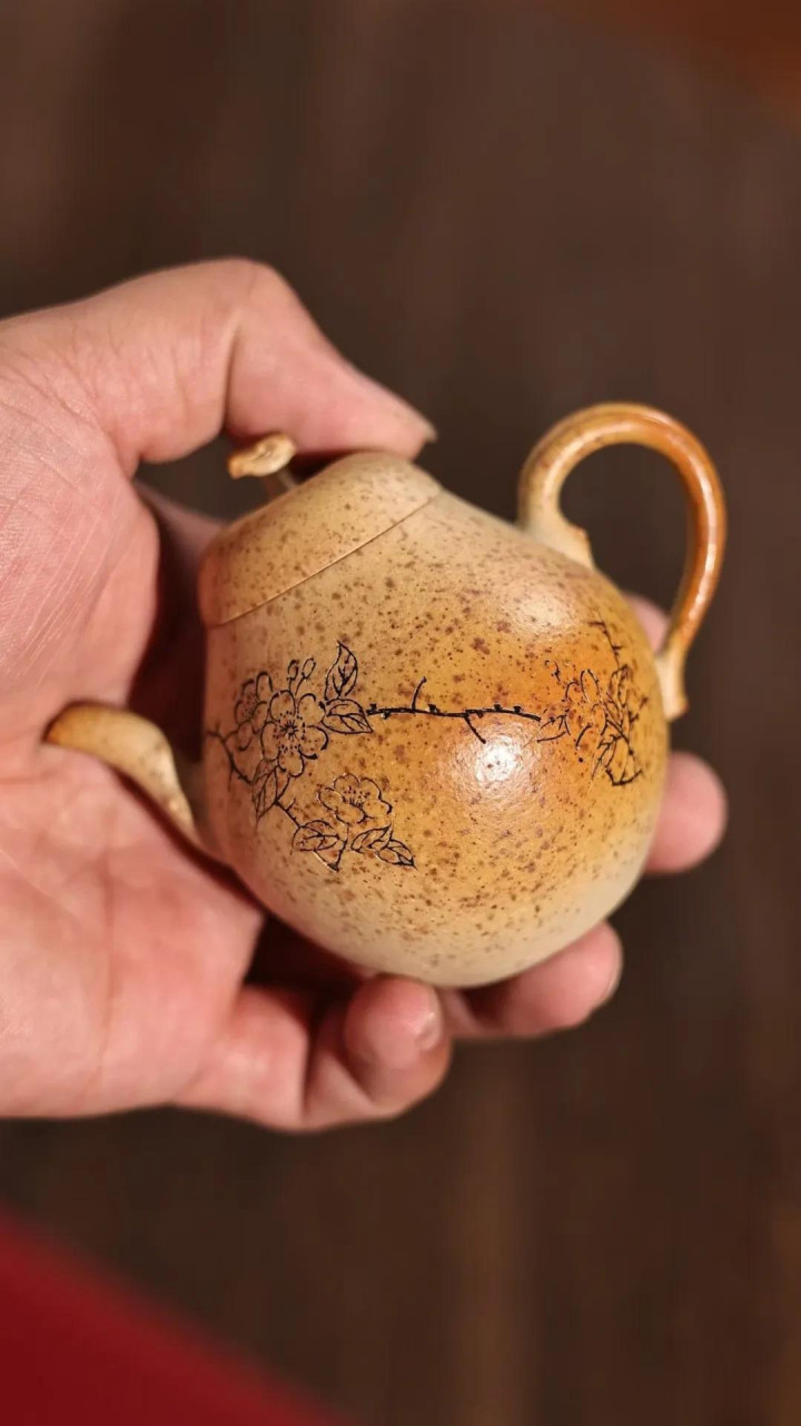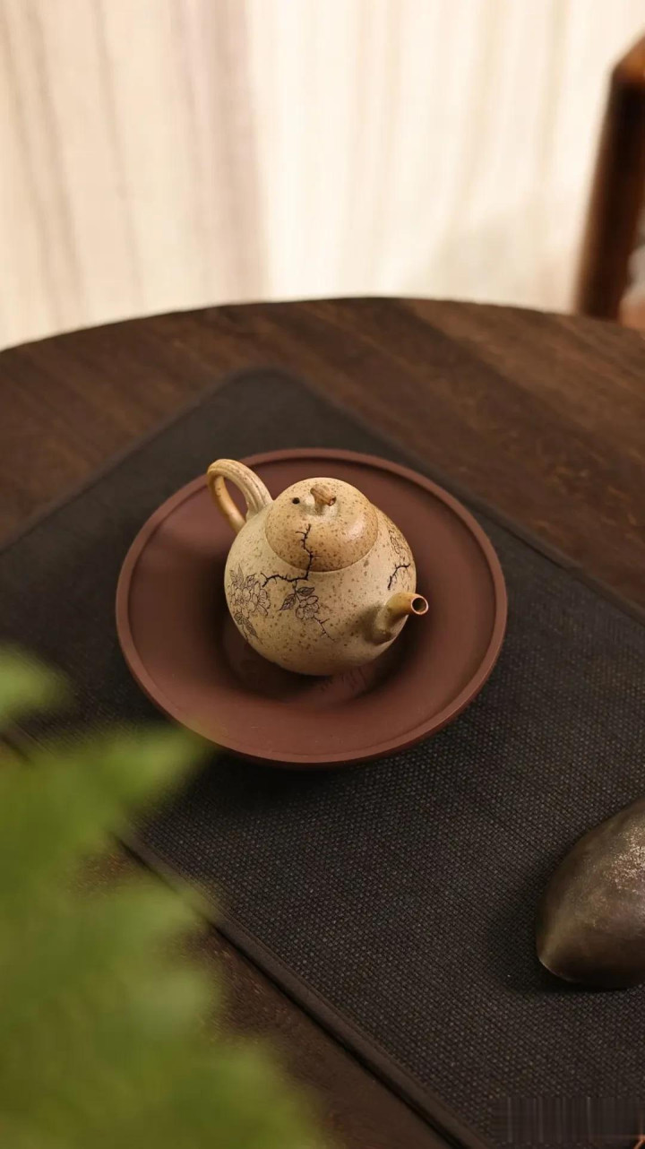 案头的光,是午后三时柔和的斜照。色泽落处,那是一把壶——原矿段泥柴烧的“小香梨”。不外掌心盈执的100cc容量,却仿佛将扫数清秋的恬澹与初春的萌动,皆照顾在了这敦然一执之中。它不是镇纸那般冷然的案头清供,而是一枚熟透的、静待知友的香梨,带着生命的温润与呼吸。